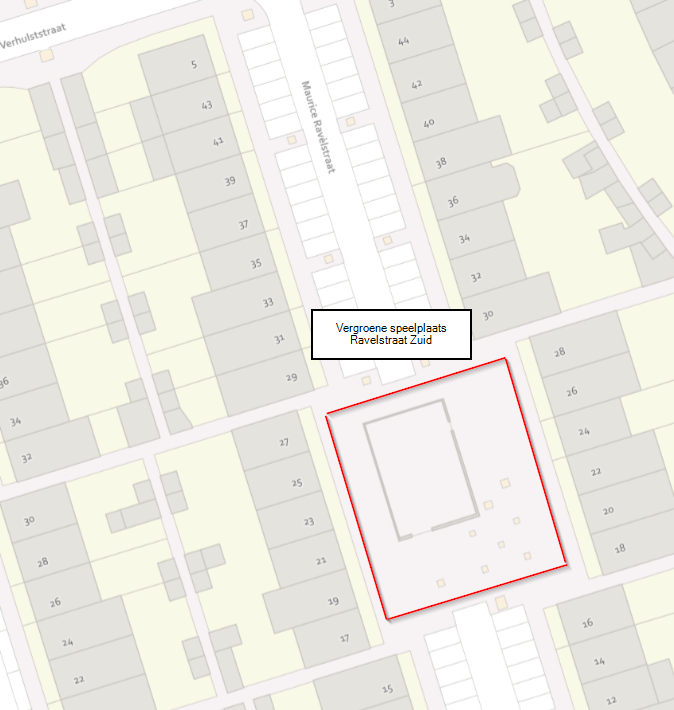 We gaan de speelplaats Maurice Ravelstraat Zuid vergroenen. Er zijn 2 speelplekken in deze straat. Dit gaat over de plek ter hoogte van huisnummer 17. Er komen meer verschillende planten in uw buurt. Dat is goed voor bijen en vlinders. Ook neemt groen meer water op als het hard regent.