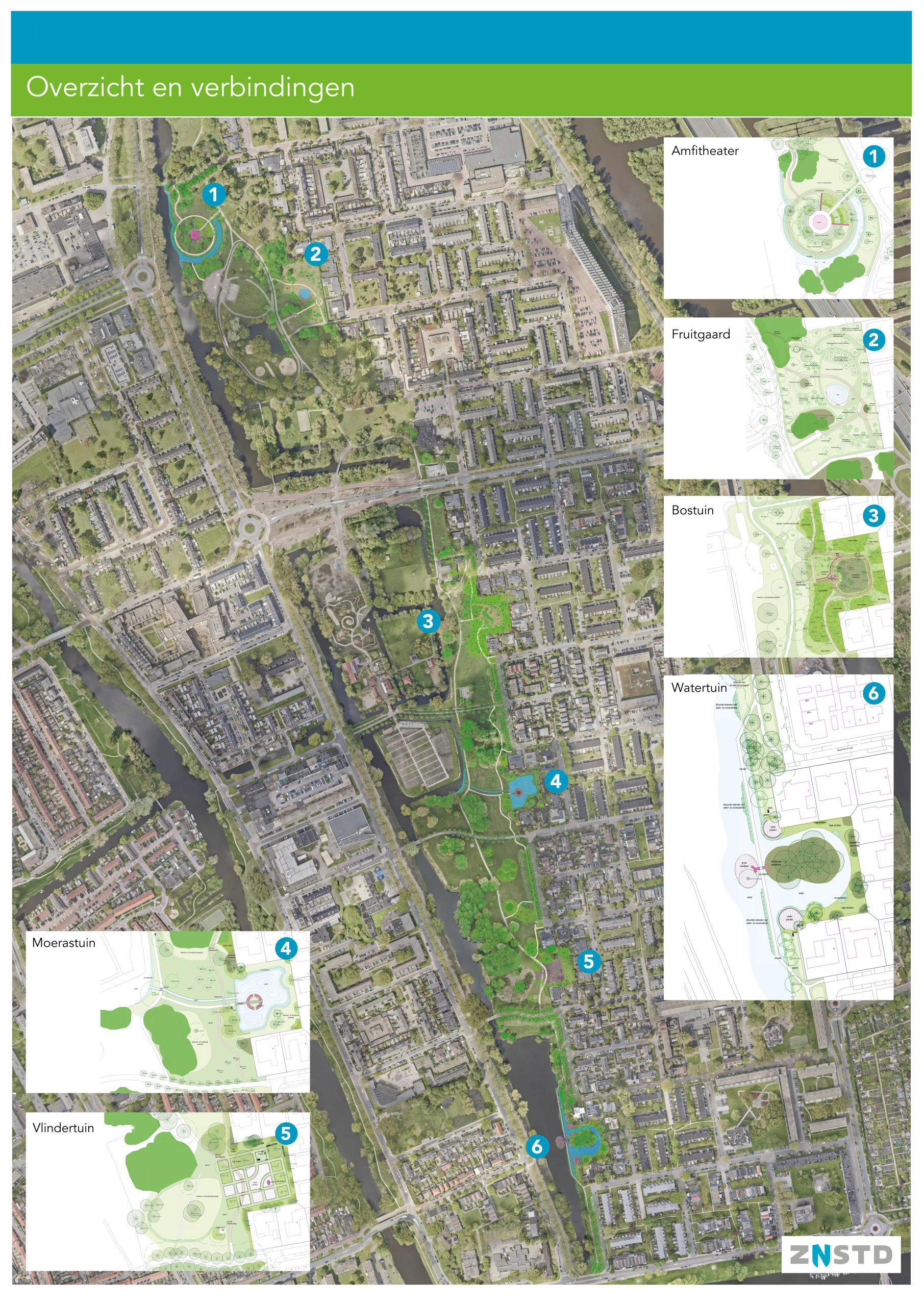 De kunstobjecten in de thematuinen blijven bestaan. Dat geldt ook voor de paden en heuveltjes. We vergroten de vlonders en de vijvertjes.