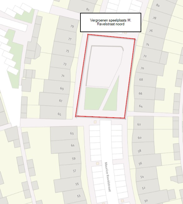 We gaan de speelplaats Maurice Ravelstraat Noord vergroenen. Er zijn 2 speelplekken op deze straat. Dit gaat over de plek ter hoogte van huisnummer 65. Er komen meer verschillende planten in uw buurt. Dat is goed voor bijen en vlinders. Ook neemt groen meer water op als het hard regent.