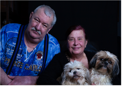 Ja, daar is het, nummer 14, op de hoek. Trappetje op, aanbellen. De deur gaat open en de keffertjes blijken twee mooie vrolijke hondjes, die tussen de benen van Hennie springen en stuiteren. Hennie: stevige vent, blauw shirt, bretels om een even stevige buik. ‘Kom verder’, zegt hij. Het geeft helemaal niks dat we met z’n drieën zijn, dat past gerust op de enorme bank in de woonkamer. ‘Gezellig’ vindt Rie, die achter het tafereel vandaan komt en gelijk theewater op gaat zetten. We nestelen ons en hoeven geen vraag te stellen. Hennie vertelt…