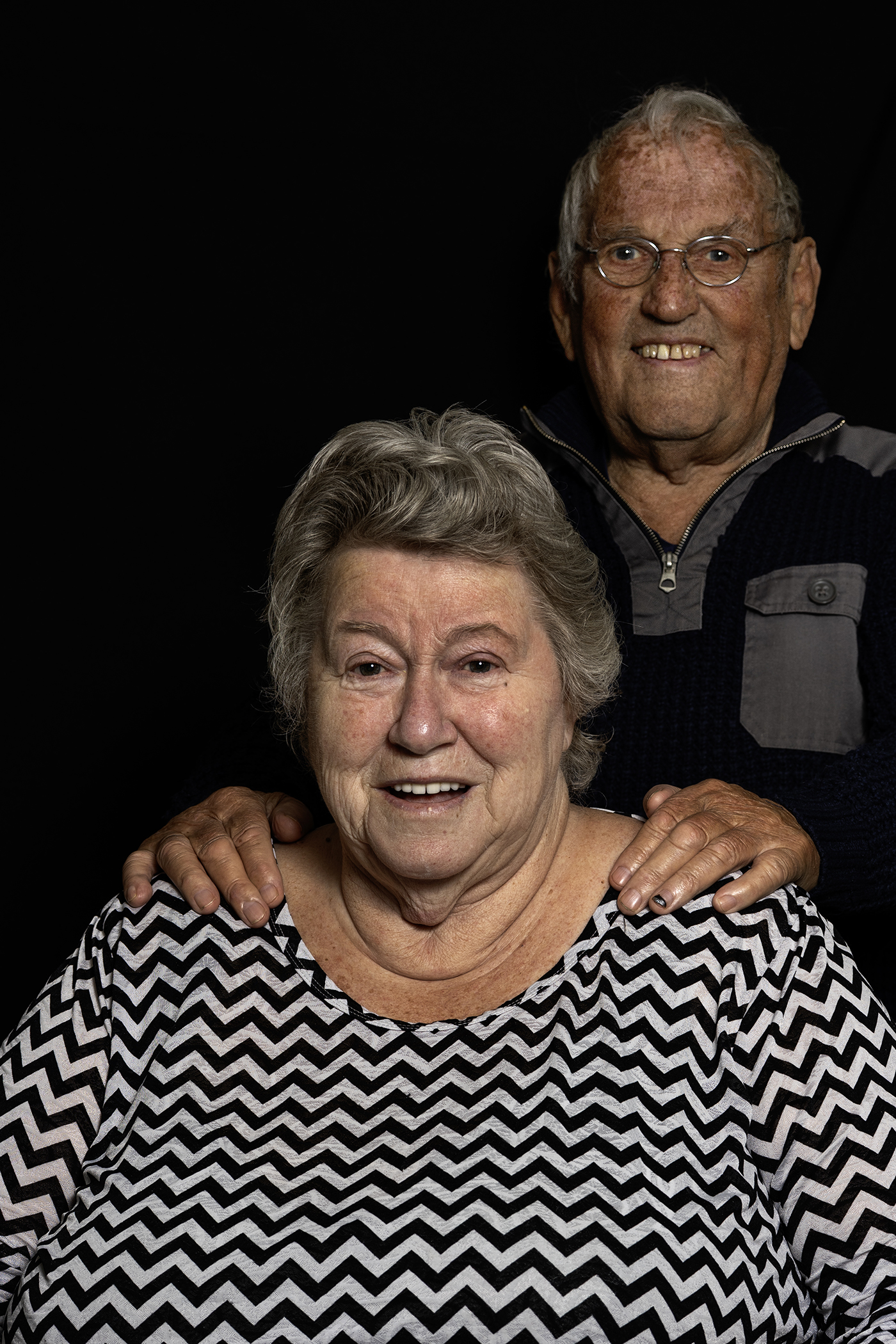 Henk & Jeroen gaan beide graag op de foto en zijn reuze benieuwd naar het resultaat. We zien samen twee stoere mannen met een lieve blik, met toch ook een wat sombere ondertoon. De schoenen van Henk gaan natuurlijk even apart en in detail op de foto. En vooruit, dan gaan ze toch ook nog even samen op de foto, voor ‘moeders’ thuis. Voorzichtig maar tegelijk vertrouwd legt Jeroen een hand op de sterke schouders van zijn vader. ‘We doen het goed samen’, zegt Henk: ‘Maar soms wil ik hem wel achter het behang plakken, hoor!’ Wat hem een semi verontwaardigde blik van zijn zoon oplevert ; )